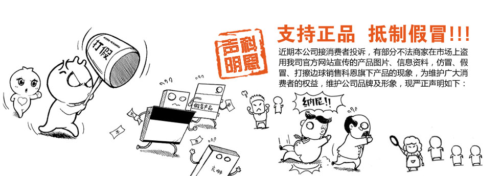 特此聲明:本公司對已發現的偽劣、仿冒和假冒科恩產品逐步曝光,希望廣大消費者提高警惕,避免不必要的損失,對提供舉報線索的用戶本公司給予重獎。