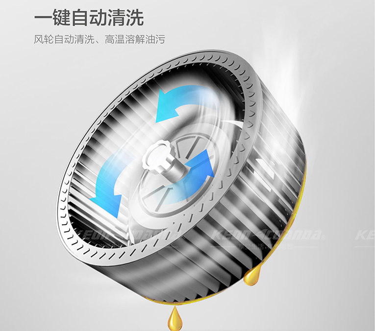 好品牌集成灶光有大吸力還不行,科恩智能蒸烤消一體集成灶還配備一鍵熱化油自動清洗功能,無需人工干預,僅需輕輕一按,全方位80°高溫環繞蝸殼,高溫熱融油垢,快速軟化油漬,高速甩掉油污,油污隨風輪離心力甩出后,自動流入油盒,風機風輪常年無黏著,保持持久大吸力。