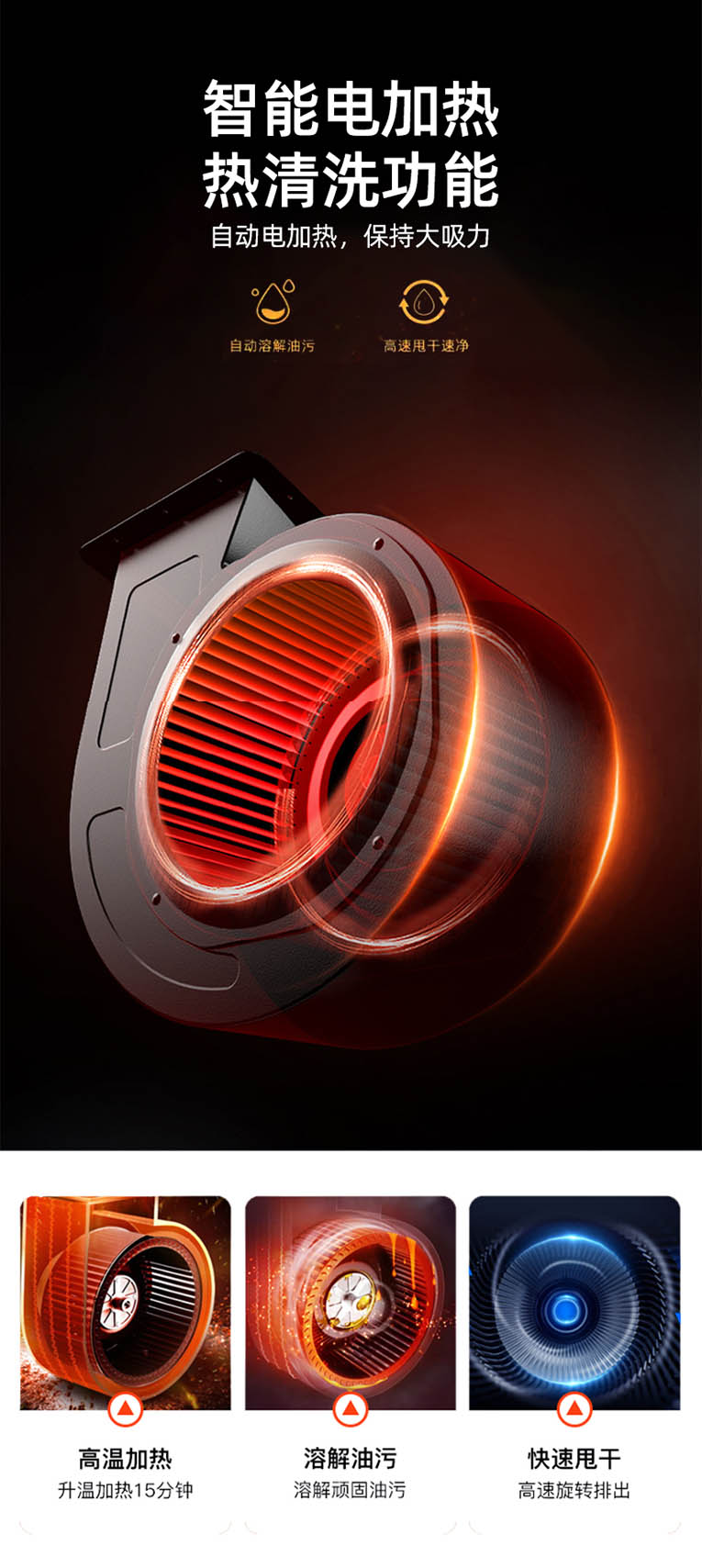 科恩S450左右蒸烤集成灶還擁有智能電加熱熱清洗功能,自動電加熱,保持大吸力,省去用戶手動清洗的麻煩,避免了機器內部藏污納垢。