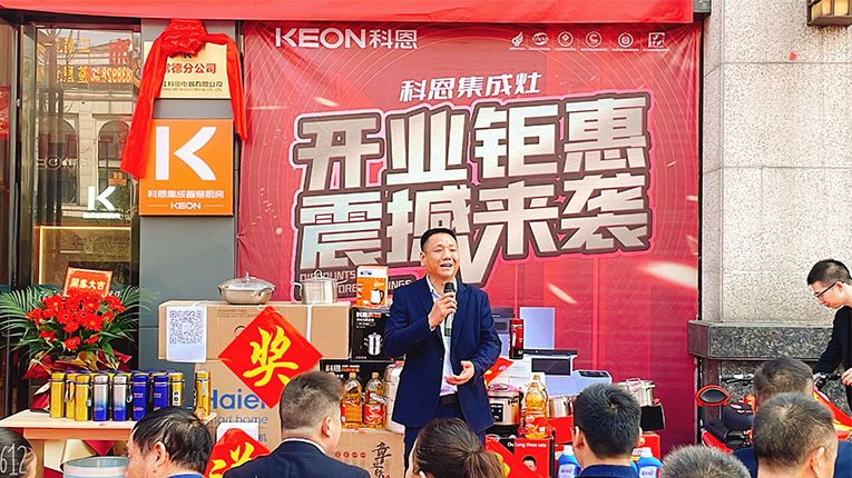 開業(yè)現(xiàn)場(chǎng),科恩集成灶銷售總監(jiān)錢總、總經(jīng)辦陳總、華南大區(qū)、區(qū)域經(jīng)理一同到場(chǎng)參與活動(dòng)。