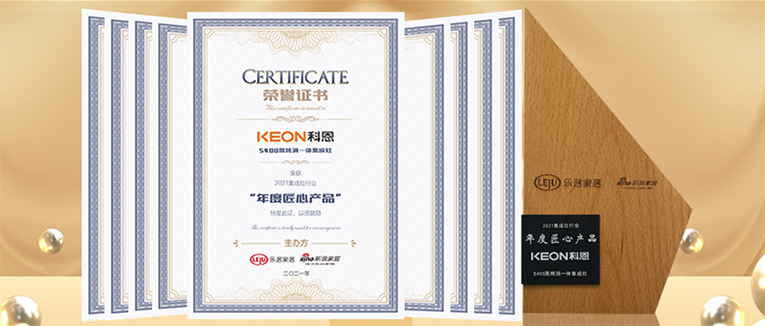 會議揭曉了集成灶行業2021年度在品牌發展、產品創新等方面優秀的品牌榜單。浙江科恩電器有限公司在此次峰會上榮獲“2021集成灶行業十大領導力品牌”,科恩S400蒸烤消一體集成灶榮獲“2021集成灶行業年度匠心產品”。雙項殊榮,實至名歸!