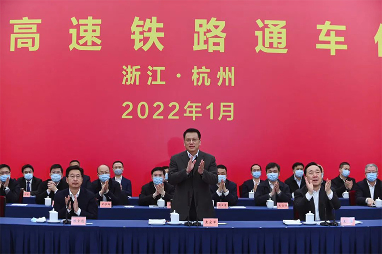 1月8日上午,浙江省委書記、省人大常委會主任袁家軍在省主會場出席儀式并宣布杭臺高速鐵路開通。