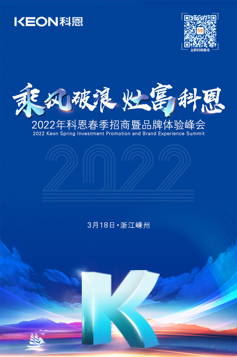 科恩集成灶“乘風破浪灶富科恩”2022年科恩春季招商暨品牌體驗峰會將于3月18日在浙江嵊州盛大開啟,共享藍海市場,共拓集成廚電新未來,歡迎有志從事集成廚電人士前來參與。