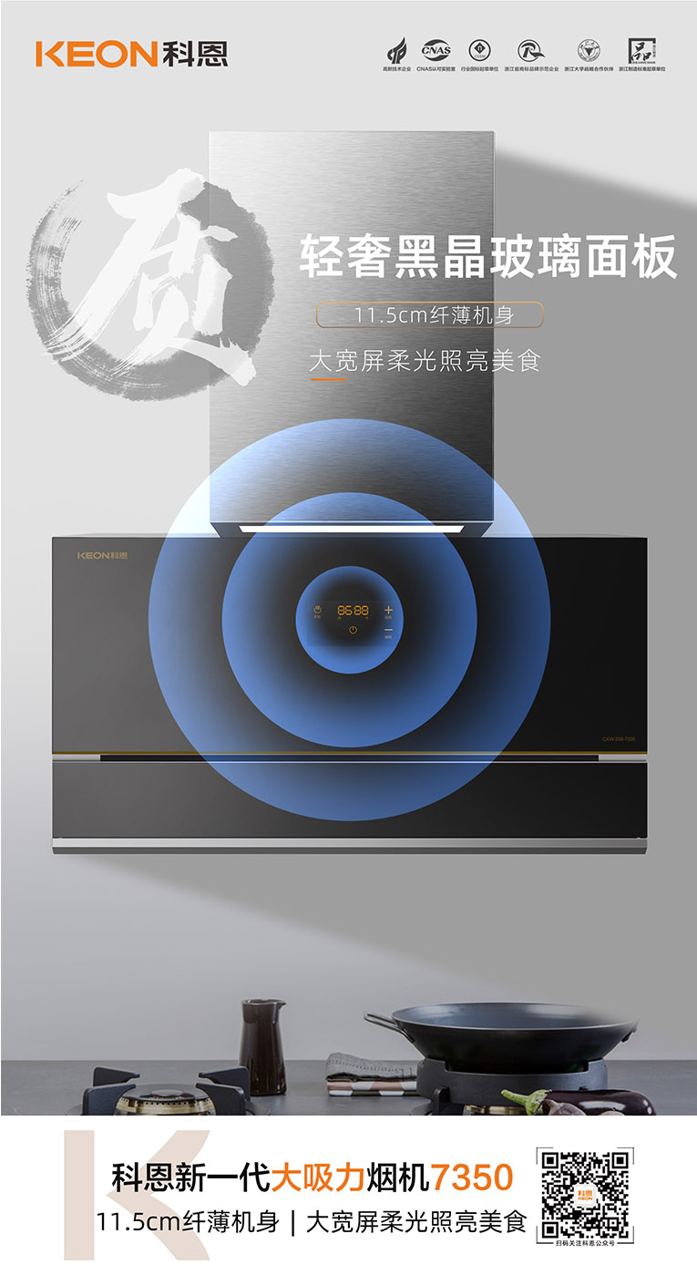 樂享智慧廚房,開啟美好食光~十大品牌科恩新一代大吸力煙機7350驚艷登場!