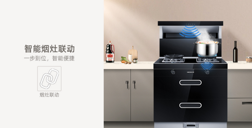 智能煙灶聯(lián)動,煙灶互聯(lián),風(fēng)隨火動,一步到位,人性化設(shè)計,智享烹飪新體驗。