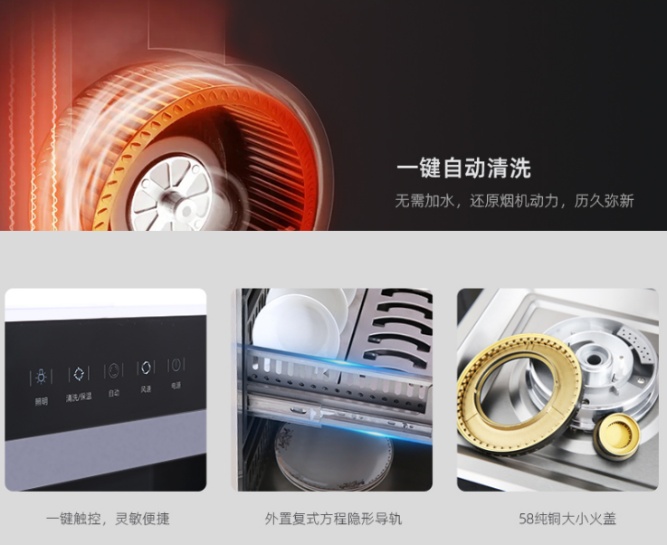 貼心細節(jié),匠心呈現(xiàn):一鍵自動清洗功能,無需加水,內(nèi)部快速去污,還原煙機動力,歷久彌新。