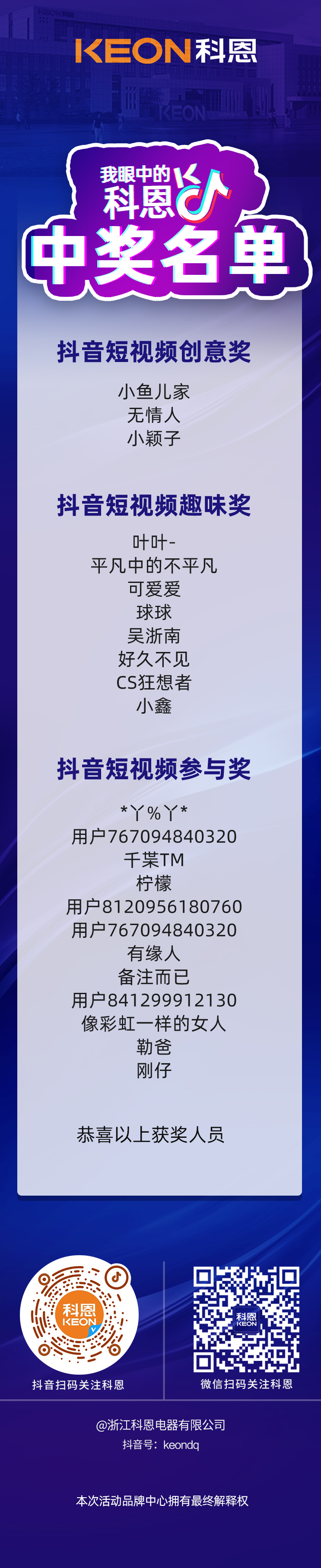 揭曉時刻|“我眼中的科恩”抖音短視頻大賽中獎名單新鮮出爐!