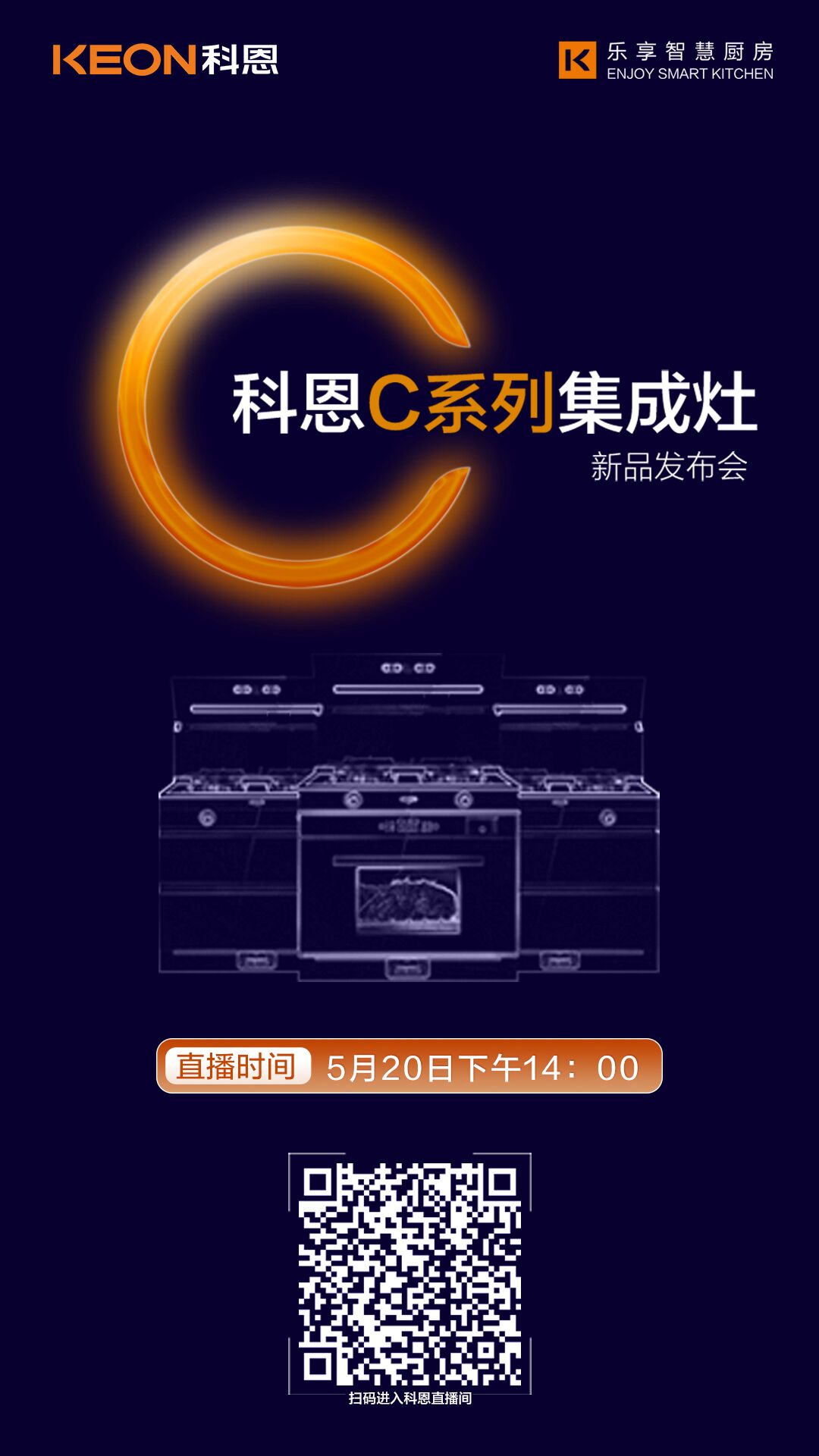 5月20日下午14:00,科恩C系列集成灶新品發布會,即將重磅啟幕,致敬獨立原創,迸發無畏能量,不負等待,驚喜即將到來!