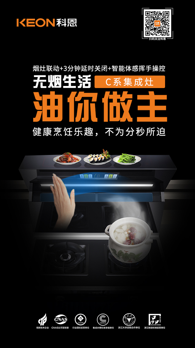 吸煙有害健康已是不爭的事實,近年來大家對于香煙危害已極為重視,但卻鮮少有人知道,其實廚房油煙比煙草危害來得更悄無聲息,特別是在喜歡熱油爆炒的中國家庭,油煙已然一躍成為影響健康的頭號隱形殺手 !告別油煙困擾,遠離油煙綜合征,你需要一臺科恩C260蒸烤消炸集成灶,陪你度過猛火爆炒油煙不過臉的每一天,有了TA,天天都是無煙日!
