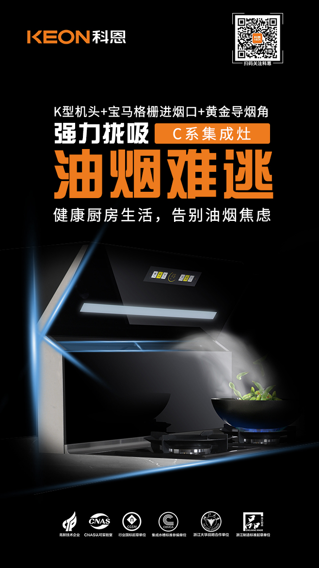 在烹飪環(huán)節(jié),側(cè)吸下排不跑煙是集成灶的必備基本功深受大眾喜愛,科恩C260在此基礎(chǔ)上突破常規(guī),創(chuàng)造性的采用以KEON首字母K為標識的機頭設(shè)計,其俯沖式角度、搭配寶馬格柵進煙口,在深腔的加持下,攏吸效果更為出色,三者相輔相成,形成黃金控?zé)焻^(qū),同步搭配瞬吸大吸力,把油煙扼殺在萌芽狀態(tài),油煙不過臉,無懼猛火爆炒挑戰(zhàn),縱享無煙廚房!