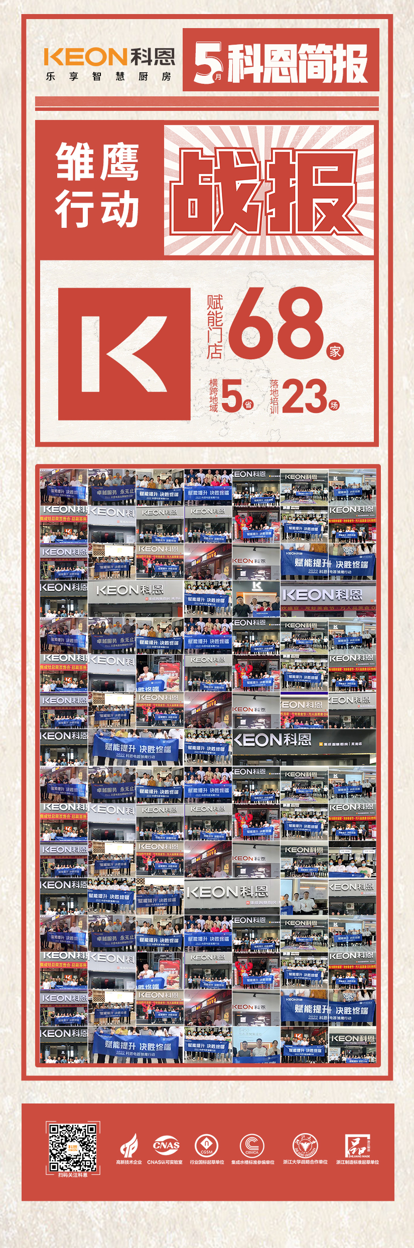 火爆五月,科恩電器積極開展強(qiáng)商育商培訓(xùn)賦能,搶抓市場重構(gòu)窗口期,賦能提升,決勝終端:科恩2022雛鷹行動、金牌服務(wù)、總裁簽售會、科恩新門店等活動在全國各處落地開花,好評不斷,為全面推動經(jīng)銷商高質(zhì)量發(fā)展提供有利保障。