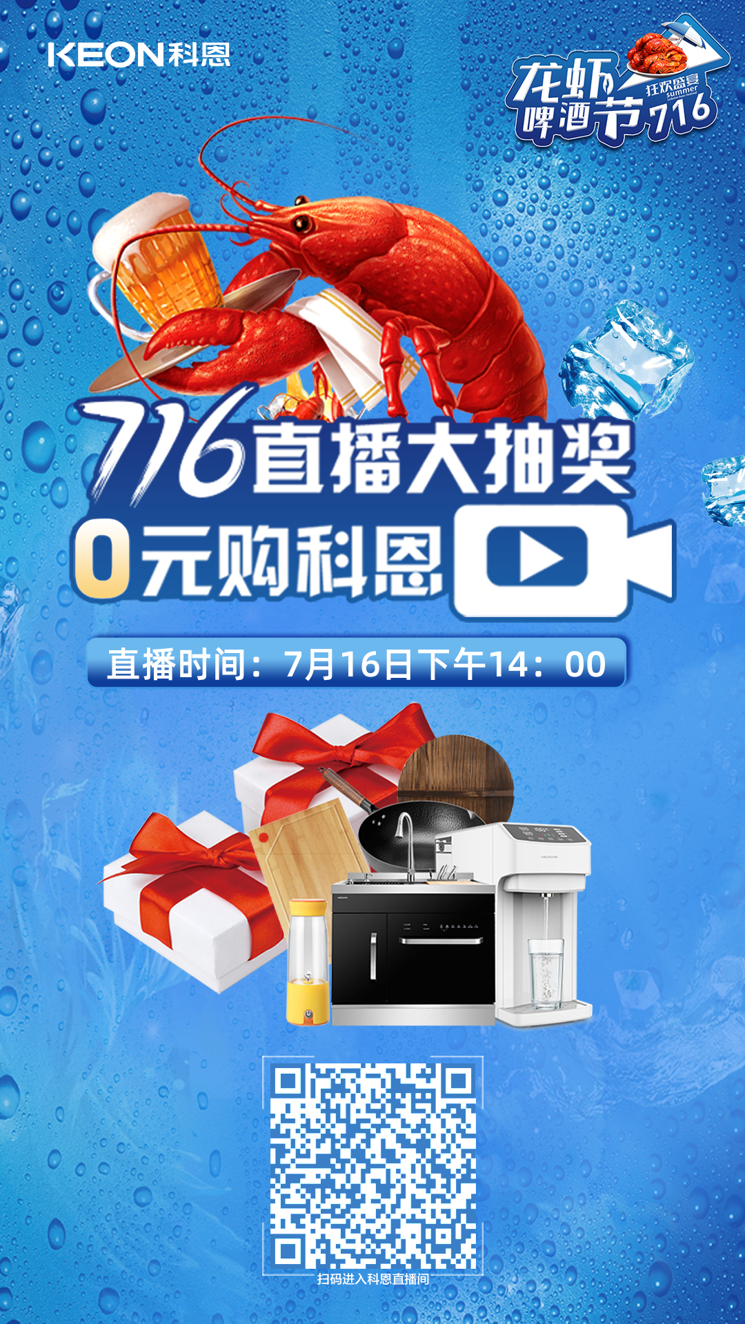 看直播中大獎,7月16日14:00,科恩龍蝦啤酒節,給你好看!
