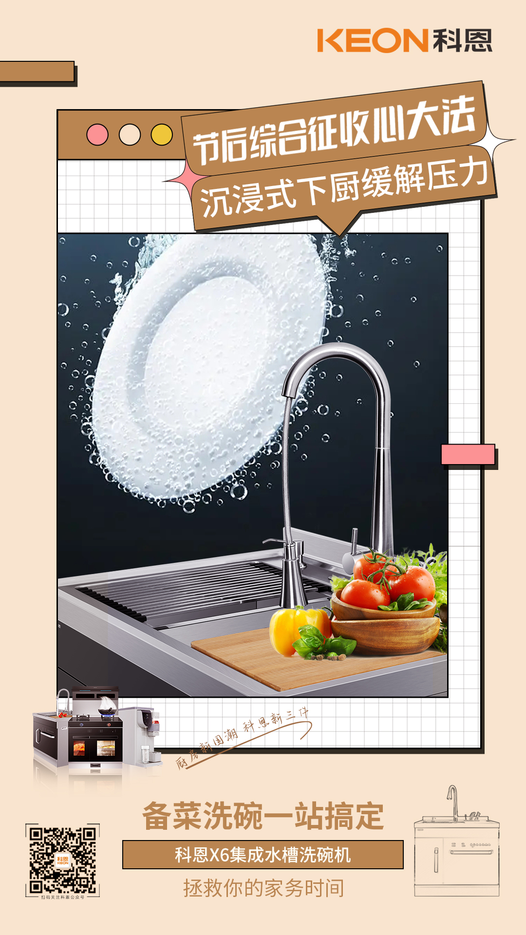 很多時候,我們不得不承認,總是空有一副熱愛烹飪的靈魂,卻總囿于打掃“戰場”的困境,只想用一頓親手制作的美食犒勞一下辛苦的自己,卻總是被飯后的鍋碗瓢盆給勸退,科恩X6集成水槽洗碗機,摒棄多余操作動線,平米之間備菜洗碗一站搞定,潔凈果蔬洗,有效去農殘,超聲波清洗,讓小龍洗清洗液成為一件無比輕松的事情,洗消烘存四合一,五大清洗模式,三大洗滌黑科技,拯救你的家務時間,讓你從此只享受沉浸式下廚的無限樂趣,剩下的就放心交給科恩X6集成水槽洗碗機!