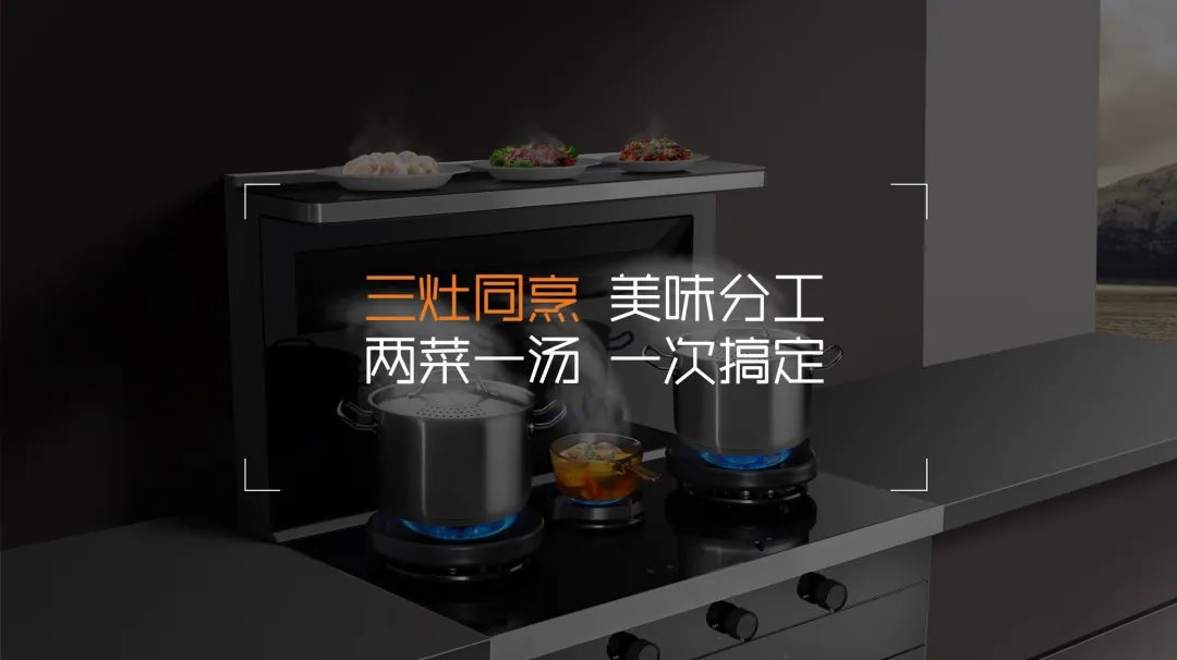 科恩A3系列集成灶擁有兩個5.0KW聚能藍焰大火力,爆炒綽綽有余,一個1.6KW定時文火小火灶,燉湯最為合適,一次開火搞定兩菜一湯!