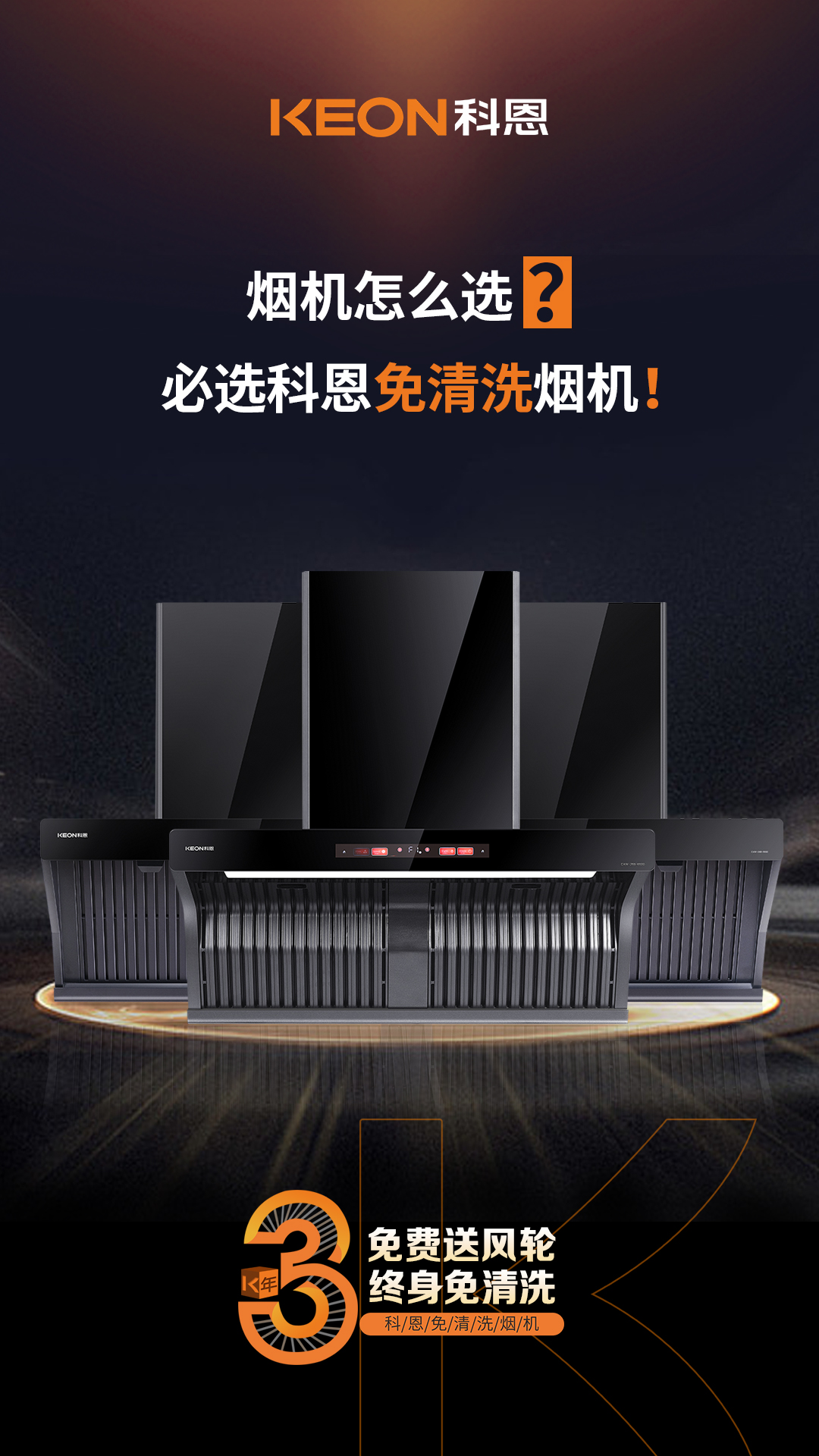 科恩電器行業(yè)率先提出3年免費送風輪服務(wù),徹底解決殘余油脂油污問題,真正實現(xiàn)煙機終身免清洗!