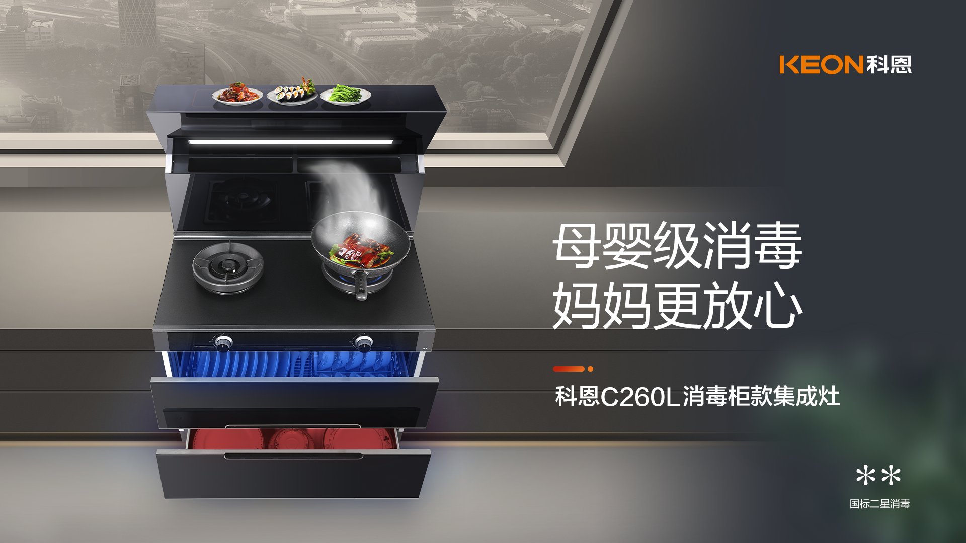 消毒柜集成灶怎么選?科恩C260L就是標準!