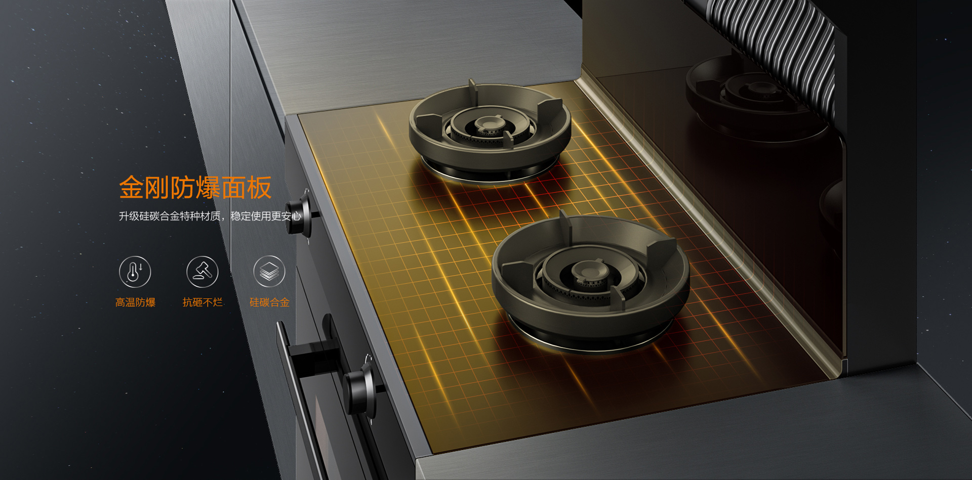 防爆金剛板解決廚房安全隱患!硅碳合金特種材質可耐高溫1500℃,高于國標3倍以上,更安全!