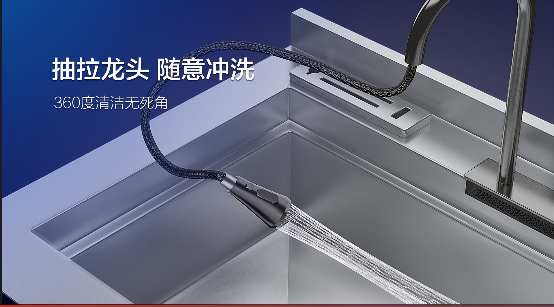 科恩X6L貼心設置抽拉式水龍頭,可實現360度無死角清洗。