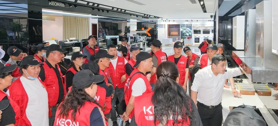 而后在區(qū)域經(jīng)理陪同下,來到了科恩展廳。從文化長(zhǎng)廊到產(chǎn)品展示,鹽城經(jīng)銷商一行更具象化的了解了科恩品牌文化及全系列產(chǎn)品。