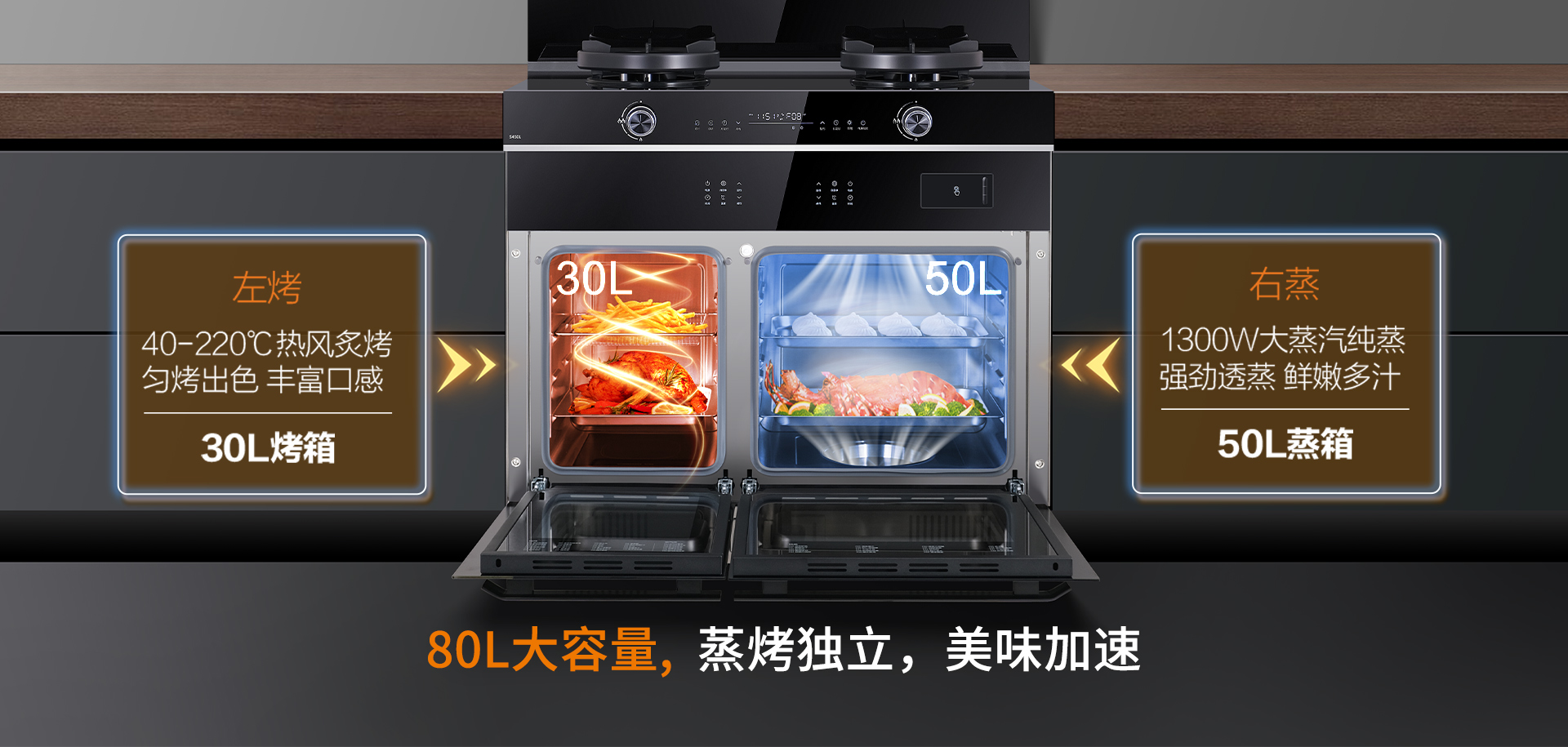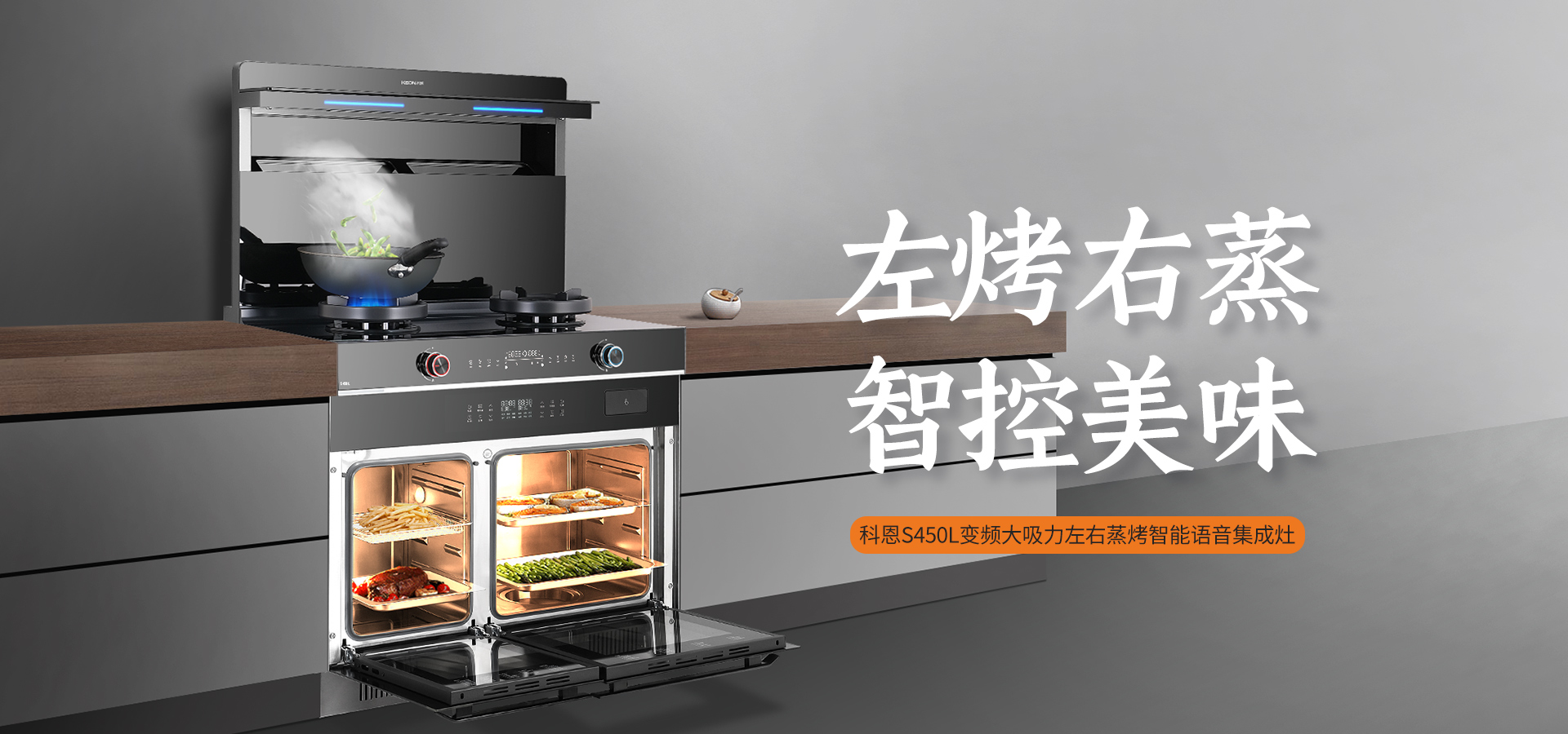 科恩S450L一臺頂多臺,滿足你對烹飪的所有需求。尤其蒸烤獨立設置,可同時滿足不同烹飪需求。帶你一鍵開啟美食之旅!