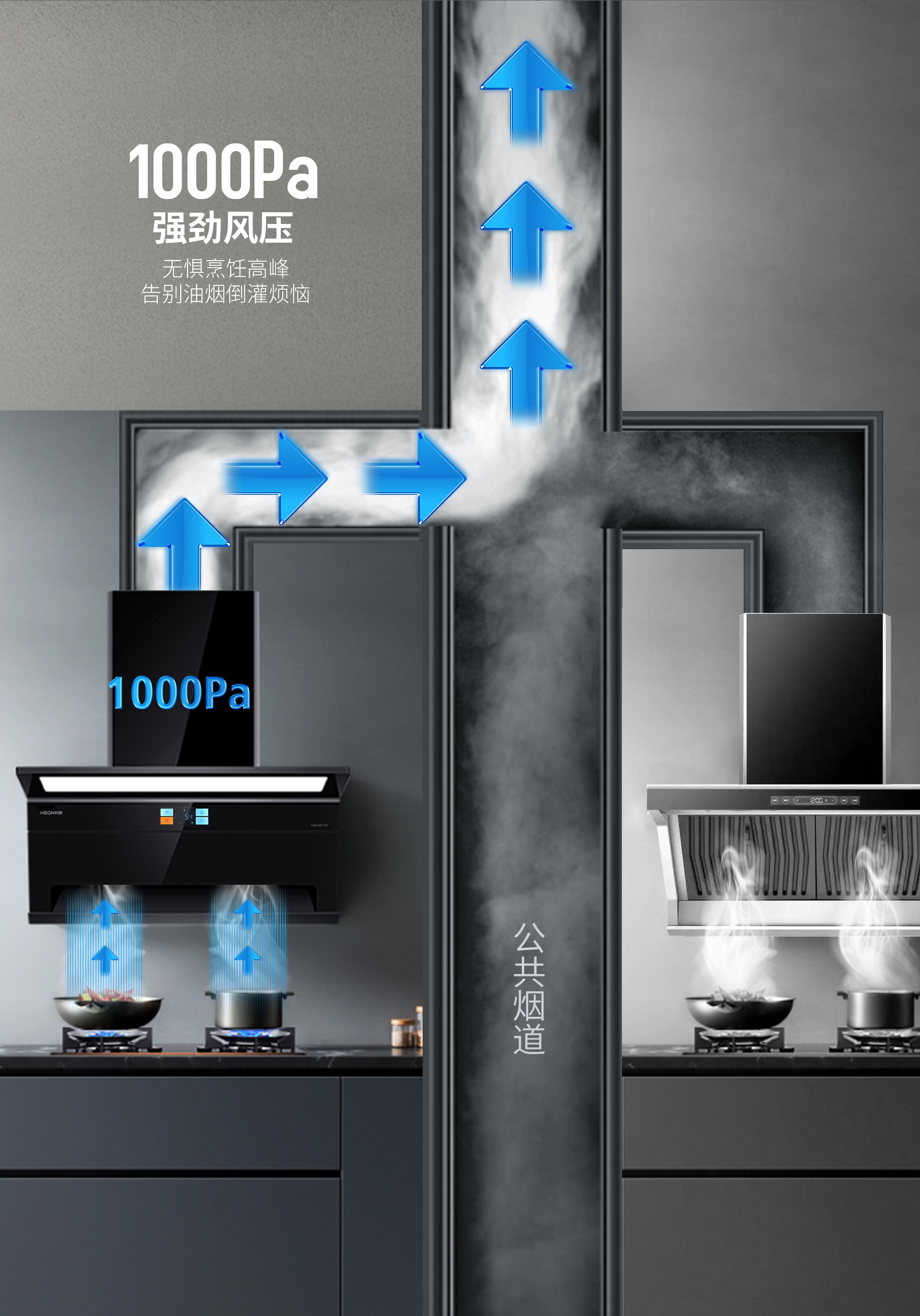 科恩7730豈止于美,它有顏有實力。24m³澎湃大吸力足以應對開放式廚房的油煙挑戰,瞬間便能讓廚房空氣恢復清新。其高位頂吸與低位側吸相結合的獨特設計,實現了1+12的凈煙真實力。下層能夠快速攏煙,上層則有效防止油煙逃逸,確保了全方位的凈煙效果。4+1檔風力可滿足從慢燉、蒸煮到爆炒等各種烹飪需求,無論何種烹飪方式,都能輕松應對。搭配1000Pa強勁風壓更是無懼烹飪高峰時段,徹底告別油煙倒灌的煩惱,讓廚房始終保持清新宜人的環境。
