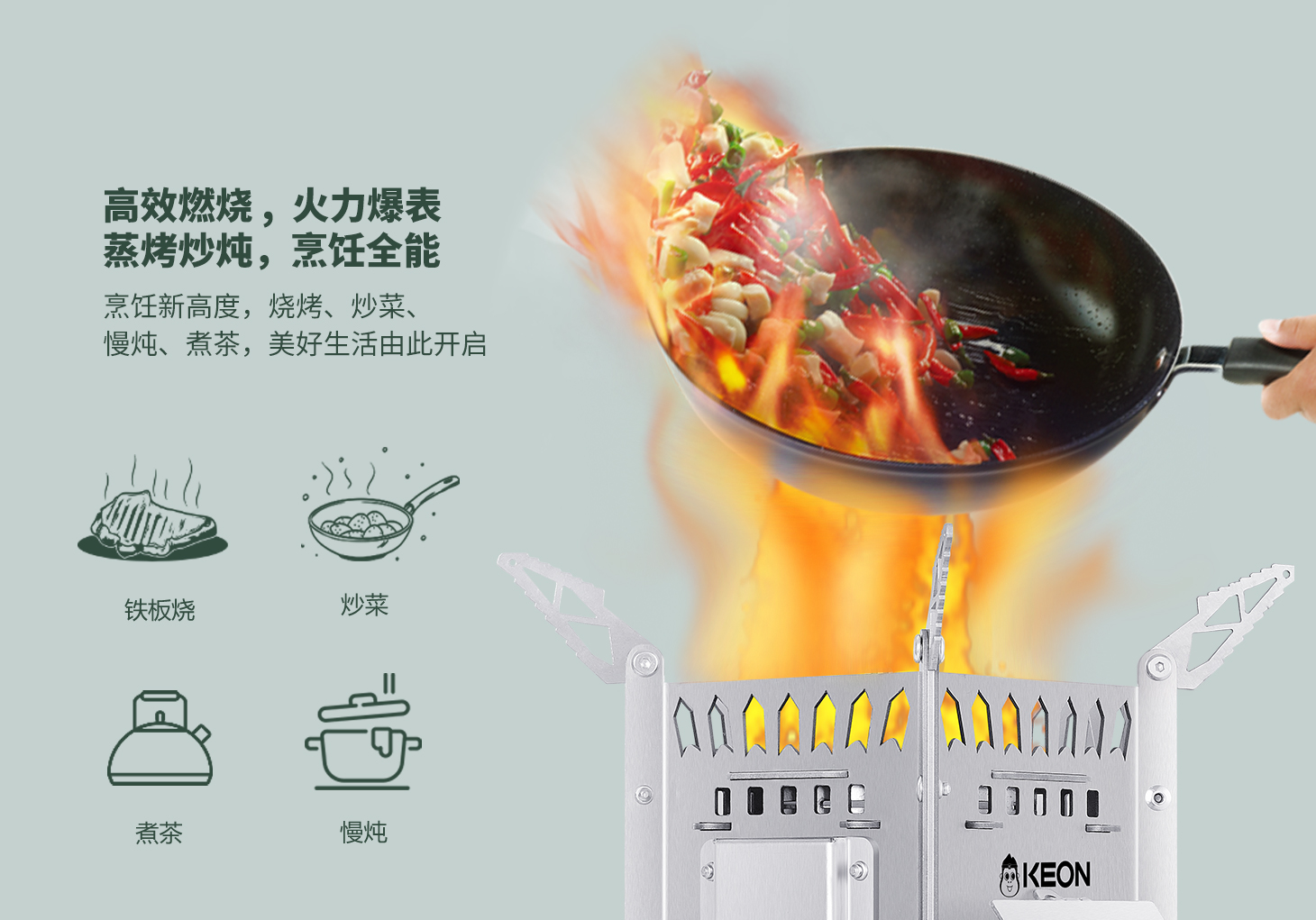 一爐多用,烹飪全能。飛檐式爐架可調節防滑設計,多種鍋型均可使用,蒸烤炒燉一機搞定。高效燃燒,火力爆表,實現林間野餐0負擔,為Z時代打造戶外烹飪元宇宙!