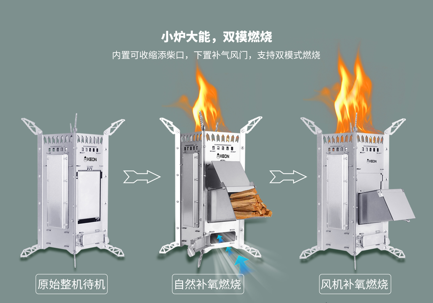 傳統爐灶的嗆鼻濃煙模糊了山色,科恩提供全新解決方案,火箭爐S12設置3D繞流供氧系統。科學供養,猛火無煙,可調支撐腳,穩立碎石坡地。熱效率超傳統爐具250%,省柴省心更省空間,從野餐到探險全覆蓋。