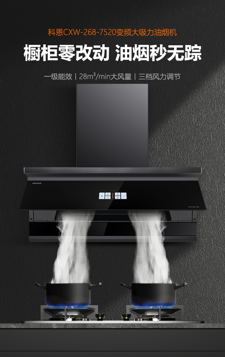暑氣至濃,且享清涼!科恩匠心守護,破暑向前行,7520 煙機為你打造清爽廚房無需大動干戈,就能讓廚房煥然一新,定義凈煙美學,重獲呼吸自由,開啟大暑烹飪的清涼之旅, 7520 煙機成為你夏日廚房的貼心伴侶!