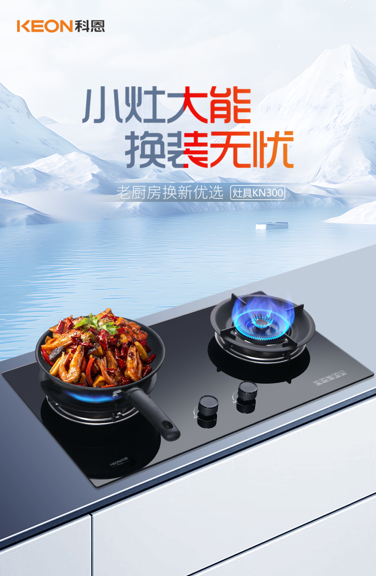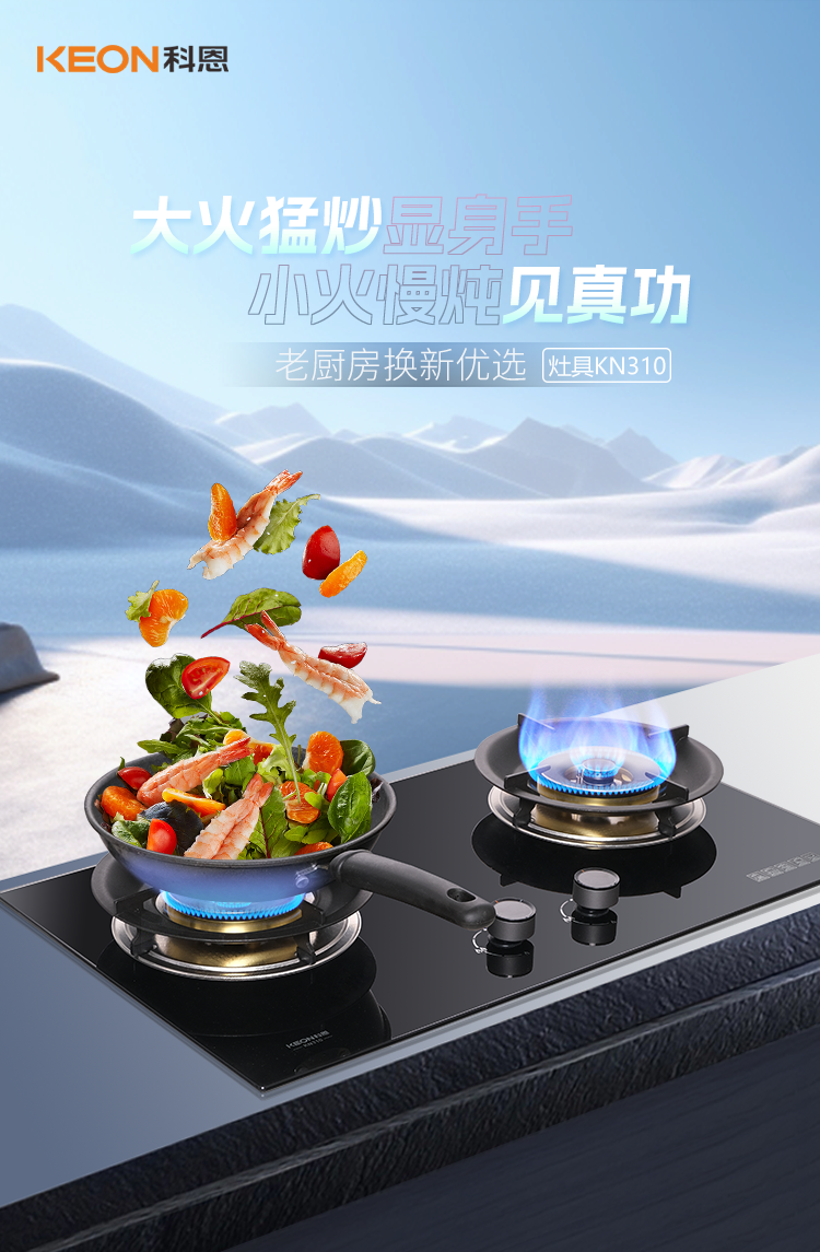 七月流火,廚房革命時。科恩全新推出灶具KN300KN310,免改孔換裝讓老廚房一鍵換新。以硬核科技重構烹飪能量核心,讓每一次開火都成為享受,告別老舊灶臺,迎接高效時代。