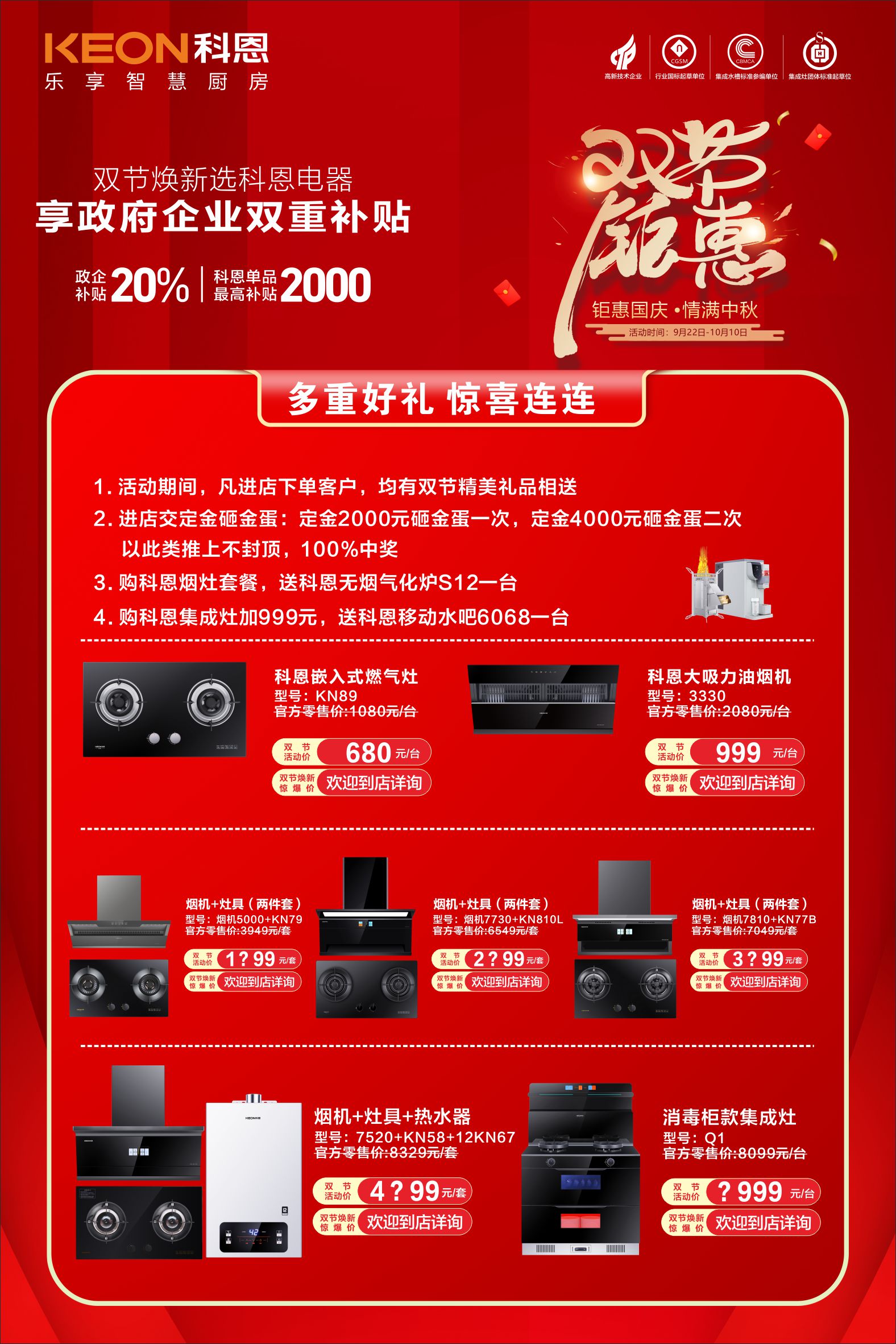 雙節(jié)同慶,廚電煥新黃金季,國(guó)慶中秋喜相逢,科恩廚電以“鉅惠國(guó)慶,情滿中秋”為主題,于9月22日-10月10日開(kāi)啟限時(shí)狂歡盛典。值此家國(guó)同慶之際,雙節(jié)狂歡盛典火熱開(kāi)啟,讓科技與溫情相伴,讓品質(zhì)生活觸手可及!