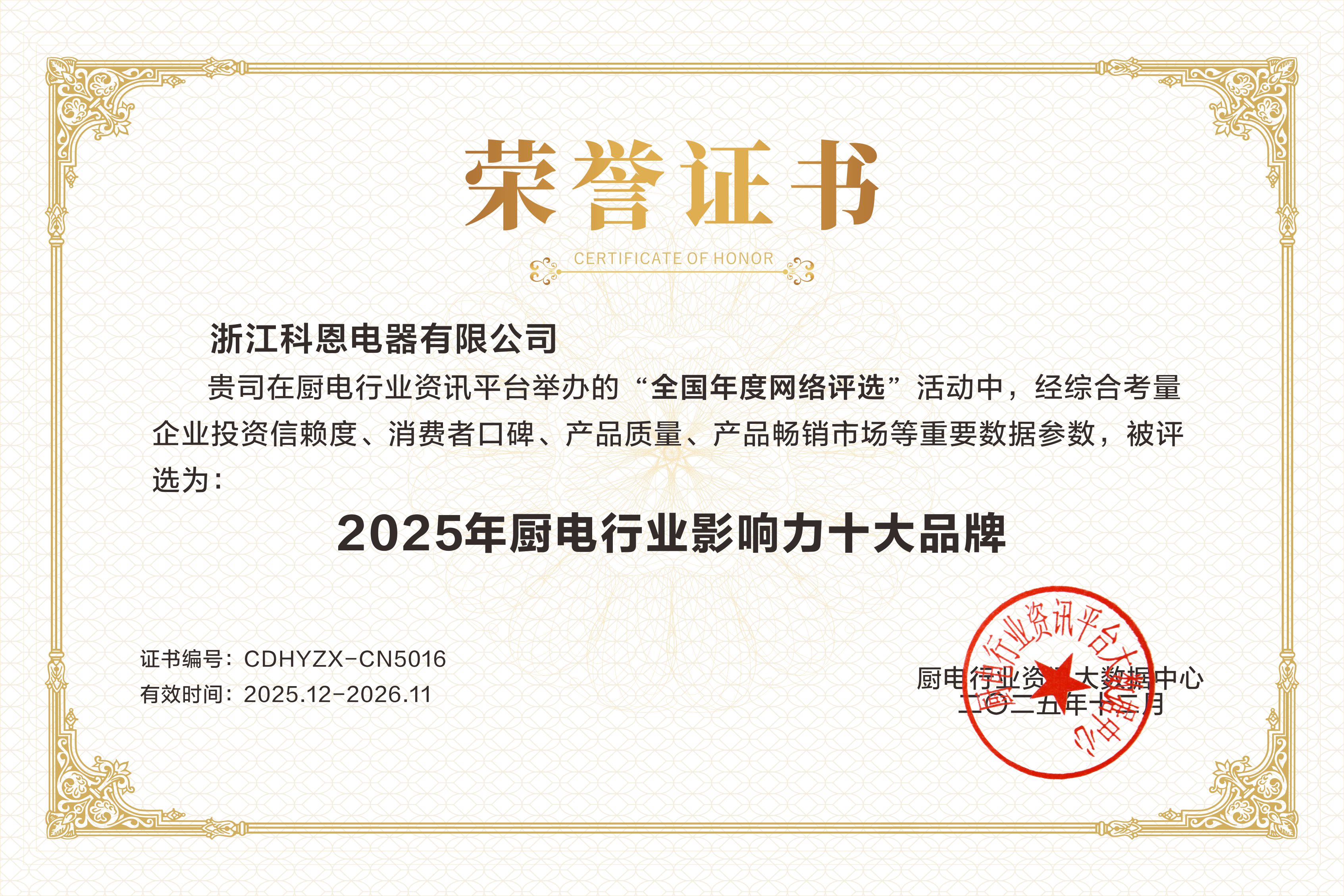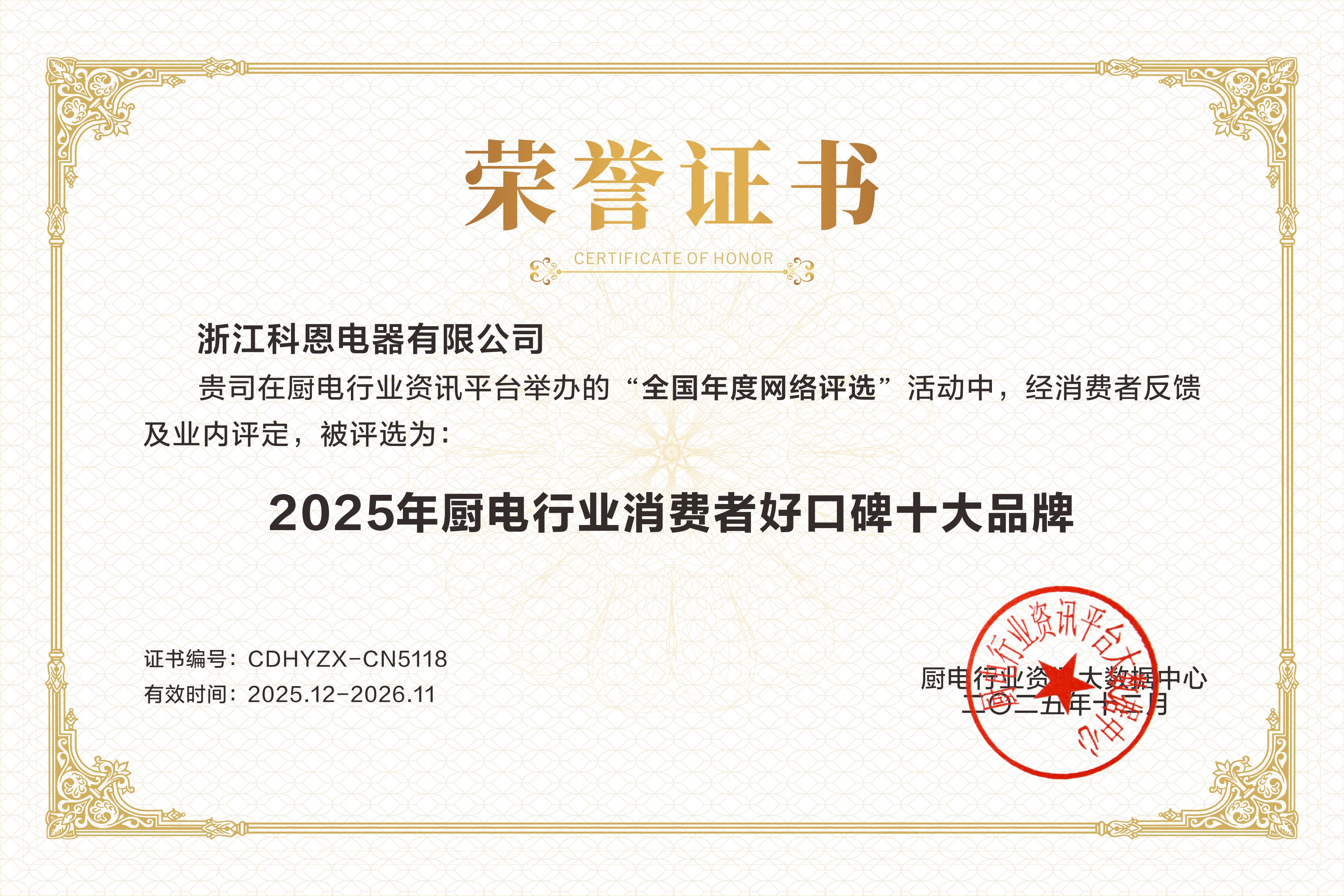 每一次獲獎(jiǎng),都是對(duì)過(guò)去的總結(jié),更是對(duì)未來(lái)的承諾。科恩電器感謝每一位用戶(hù)的信賴(lài)與選擇,感恩行業(yè)伙伴的認(rèn)可與同行。站在新的高度,科恩將承載這份榮耀與期待,繼續(xù)秉持匠心與創(chuàng)新精神,不僅致力于提升中國(guó)家庭的廚房生活品質(zhì),更愿與行業(yè)一同成長(zhǎng),共同推動(dòng)廚電產(chǎn)業(yè)邁向更高水平的發(fā)展征程。