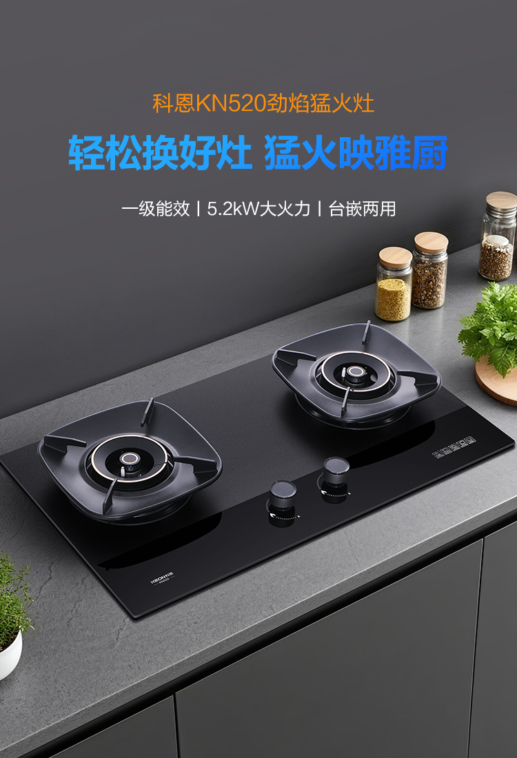 免改煥新,秒換好灶。老舊灶具換裝難,拆改打孔費(fèi)時(shí)間,科恩KN520臺(tái)嵌兩用,免改孔徑零門檻,黑色油砂納米面板,油污一擦即凈,高亮旋鈕防燙隔熱,指尖操作更安心。無需折騰舊廚房,煥新只需舉手間,讓老房廚房輕松升級(jí)無負(fù)擔(dān)。猛火寬域,味鮮效高。5.2kW三噴猛火,爆炒鎖鮮不留痕,0-170°無極調(diào)火,文火慢燉更入味。上銅下鋁火蓋設(shè)計(jì),導(dǎo)熱均勻不夾生航空級(jí)鋁合金燃燒器,耐高溫不易變形,超70%新標(biāo)一級(jí)能效,省氣省錢減開支。猛火不費(fèi)氣,家常也能出大廚味。易潔防爆,安全護(hù)航??刹鹦痘鹕w設(shè)計(jì),深度清潔無死角。鋁合金爐頭防堵防銹,耐用十年依舊新,黑色啞光爐架聚能防風(fēng),火苗穩(wěn)定不跑偏。意外熄火即刻斷氣,湯汁溢出不慌神。防爆抗砸面板加持,廚房安全雙保險(xiǎn)。烹飪無憂,健康呼吸伴三餐。