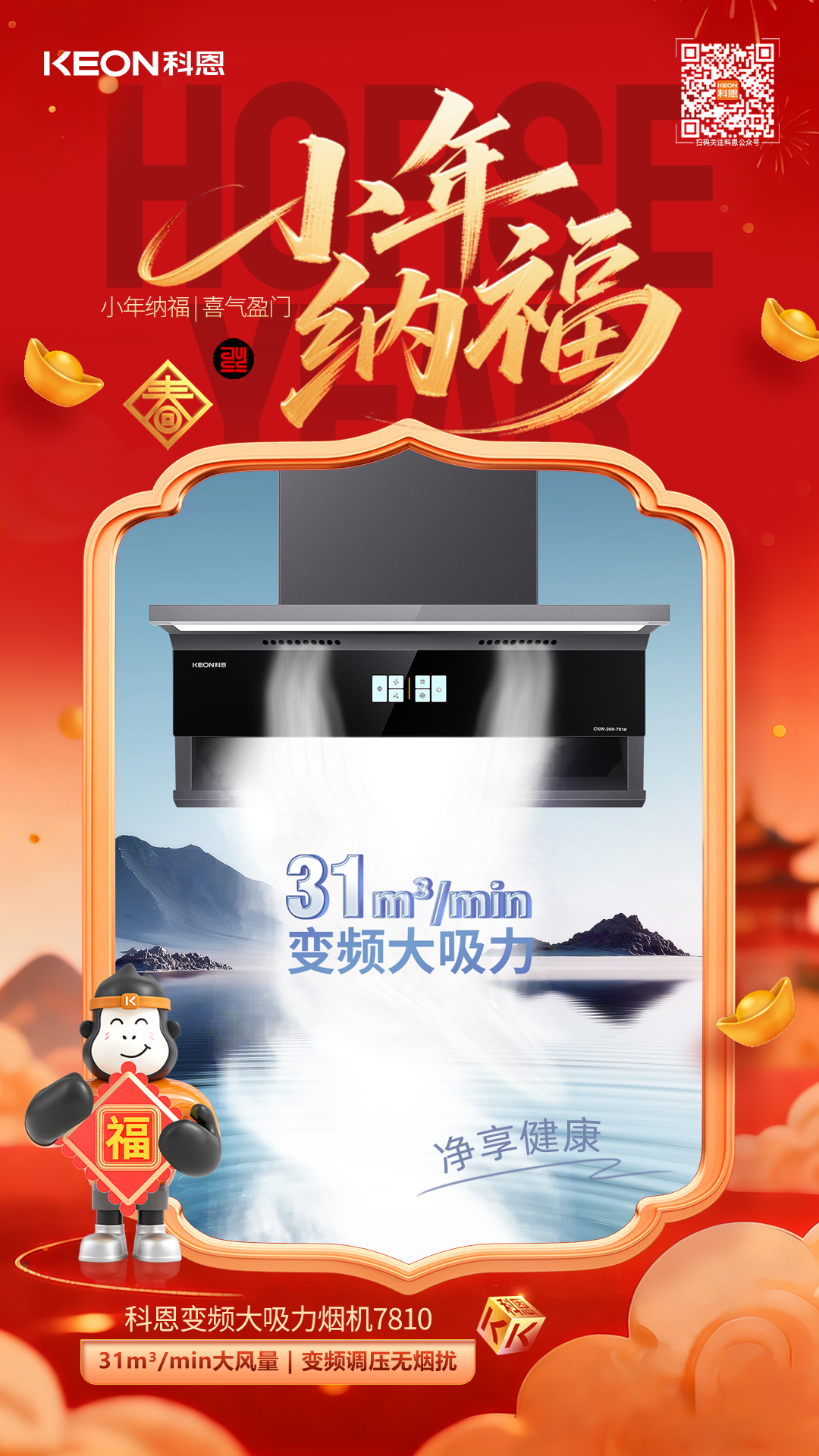 小年祭灶祈安康,科恩7810煙機以凈煙實力守護團圓之美。它讓廚房告別油煙困擾,以顏值點亮家居,用智能簡化操作,用健康貫穿始終。這個小年,讓科恩煙機陪伴你洗凈舊塵、烹煮佳肴,在清新潔凈的廚房中,迎接福氣滿盈的新春。