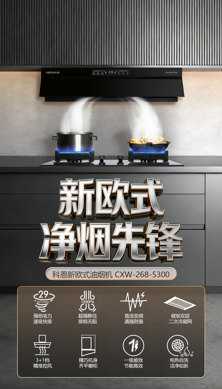 春序新生・凈煙入畫!科恩新歐式凈煙先鋒煙機5300新品來襲!