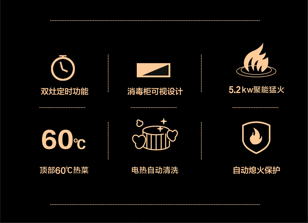• 頂部60℃保溫置物功能,無油煙置物區,調料罐免受油煙侵擾