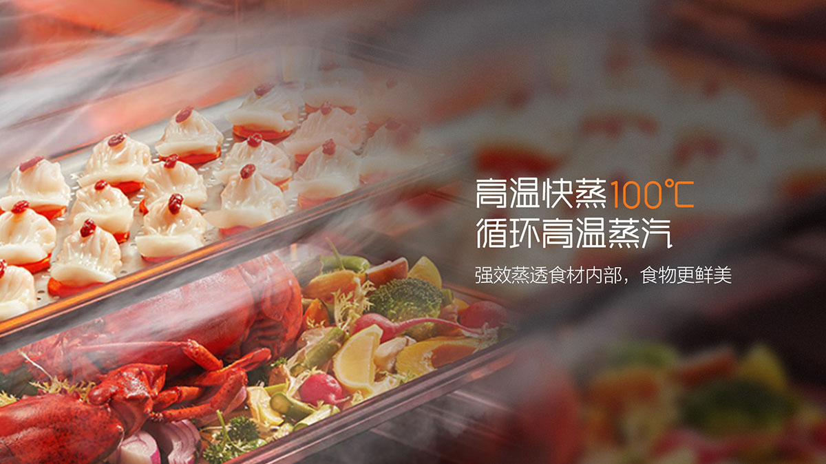 • 360°立體環噴技術,加速動態蒸汽內循環,食物鎖鮮更營養