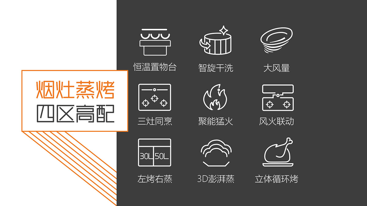 • 三灶同烹,5.0kW猛火爆炒+1.6kW文火慢燉,高效全能,美味加速