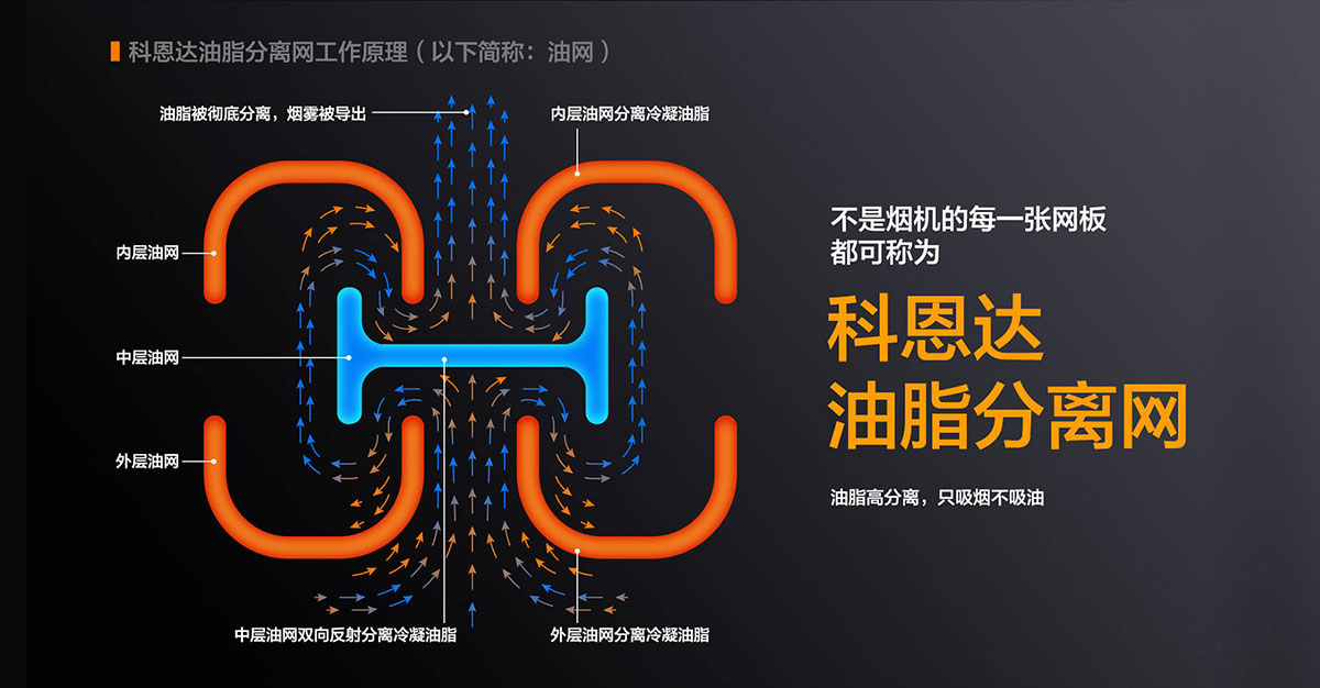 • 科恩達油脂分離網便捷拆裝設計,表面易潔工藝,拆洗簡單
