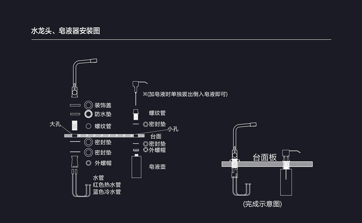 • 高端內置皂液器,隨洗隨用 ,不占空間更便捷