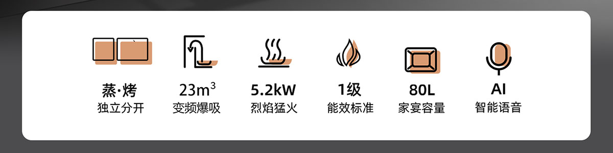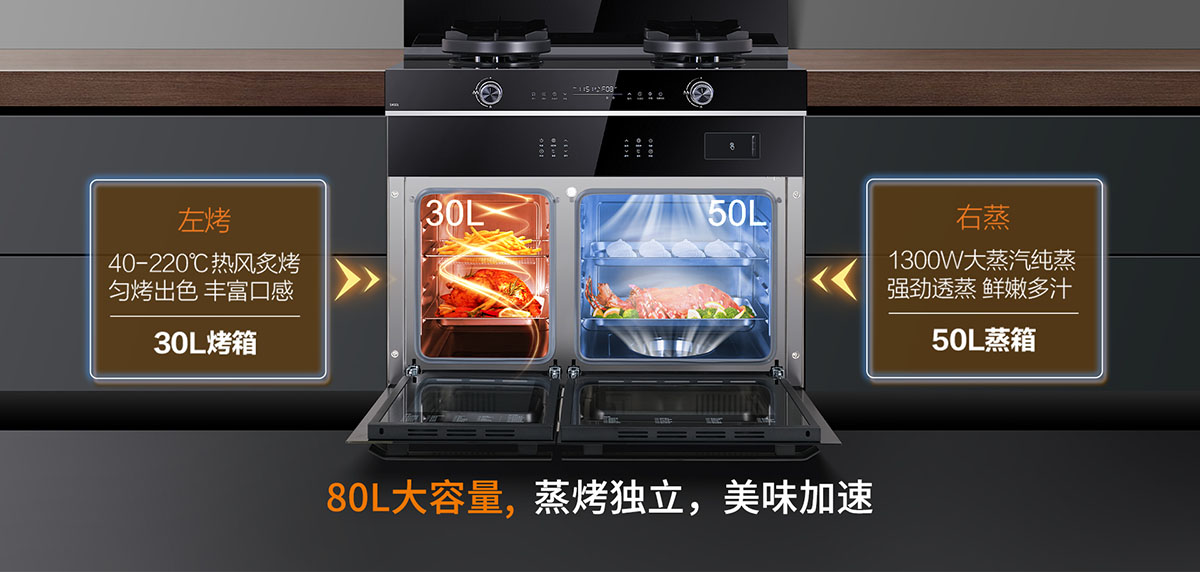• 80L大容量,蒸烤獨立,美味加速
