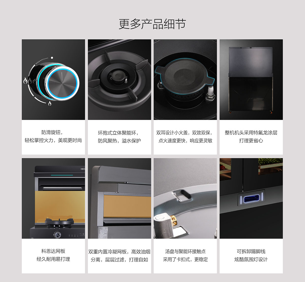 • 環抱式立體聚能環,防風聚熱,同時也起到了溢水保護