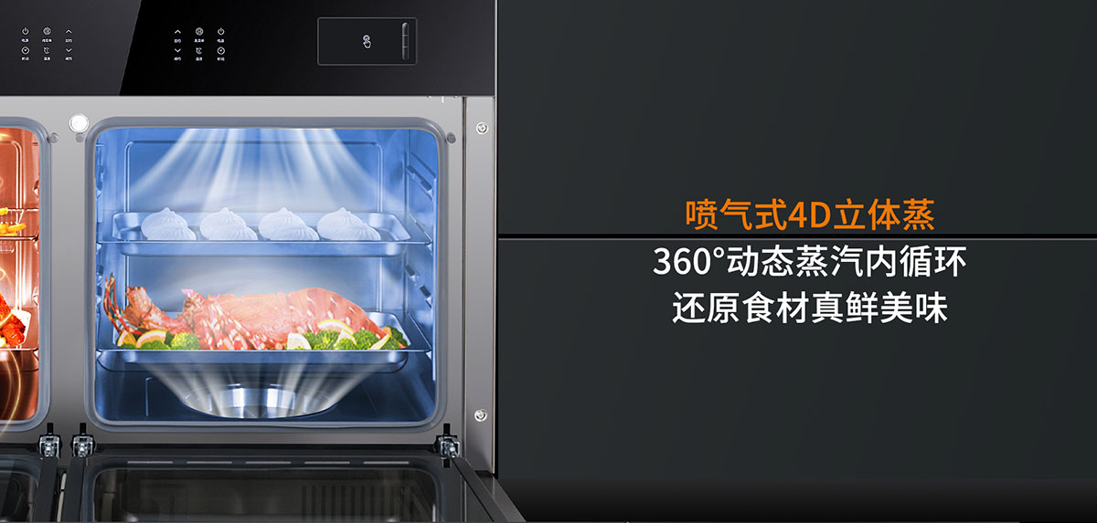 • 噴氣式4D立體蒸,360°動態蒸汽內循環,還原食材真鮮美味