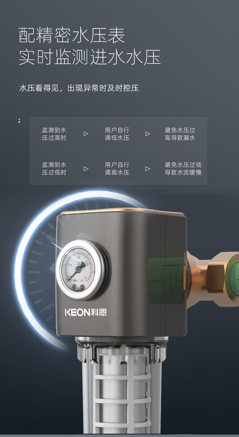 • 配精密水壓表,實時檢測進水水壓