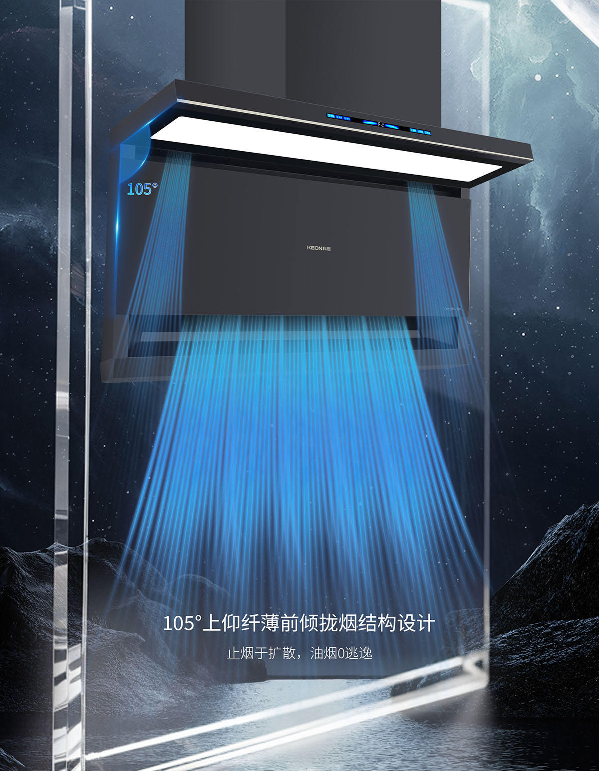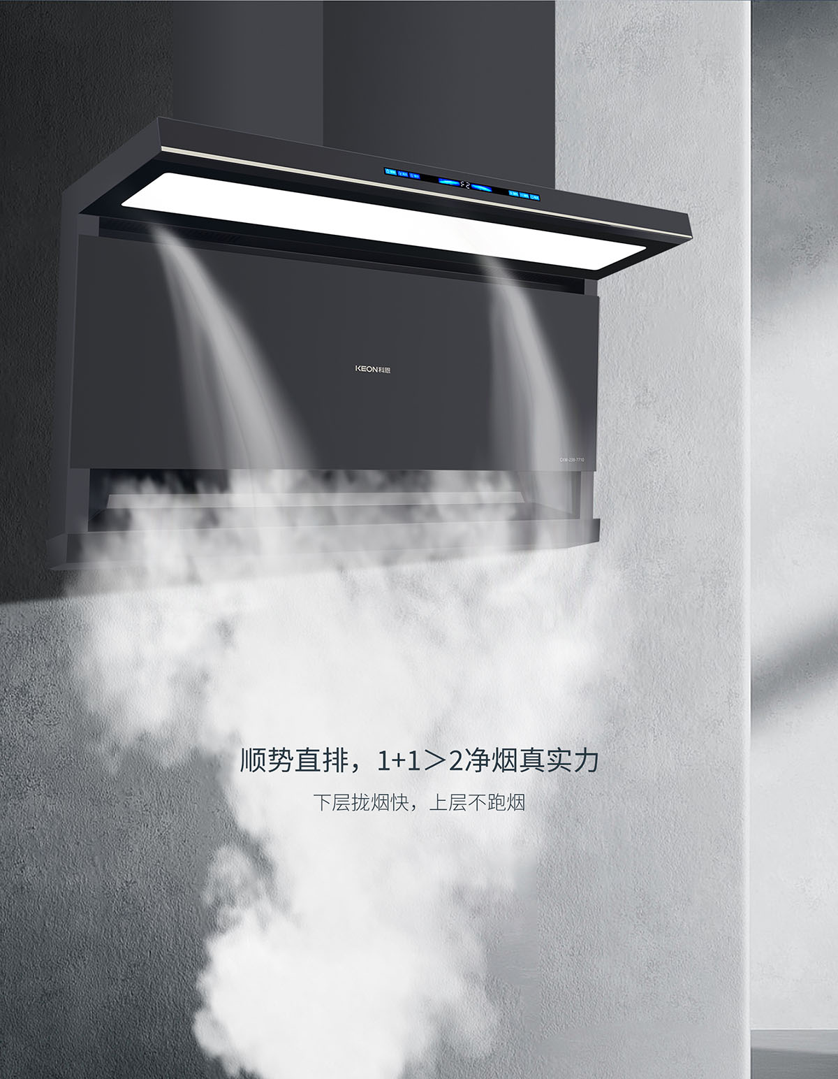 - 下吸上攏,頂側(cè)雙吸結(jié)構(gòu),油煙不逃逸