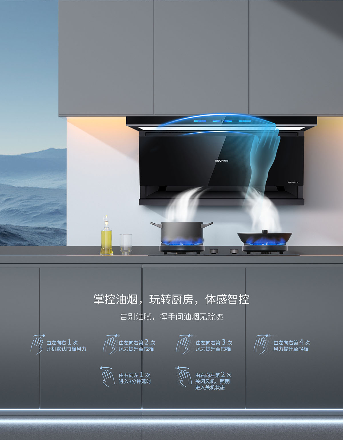 - 體感智控,揮手間油煙無(wú)蹤,杜絕油膩