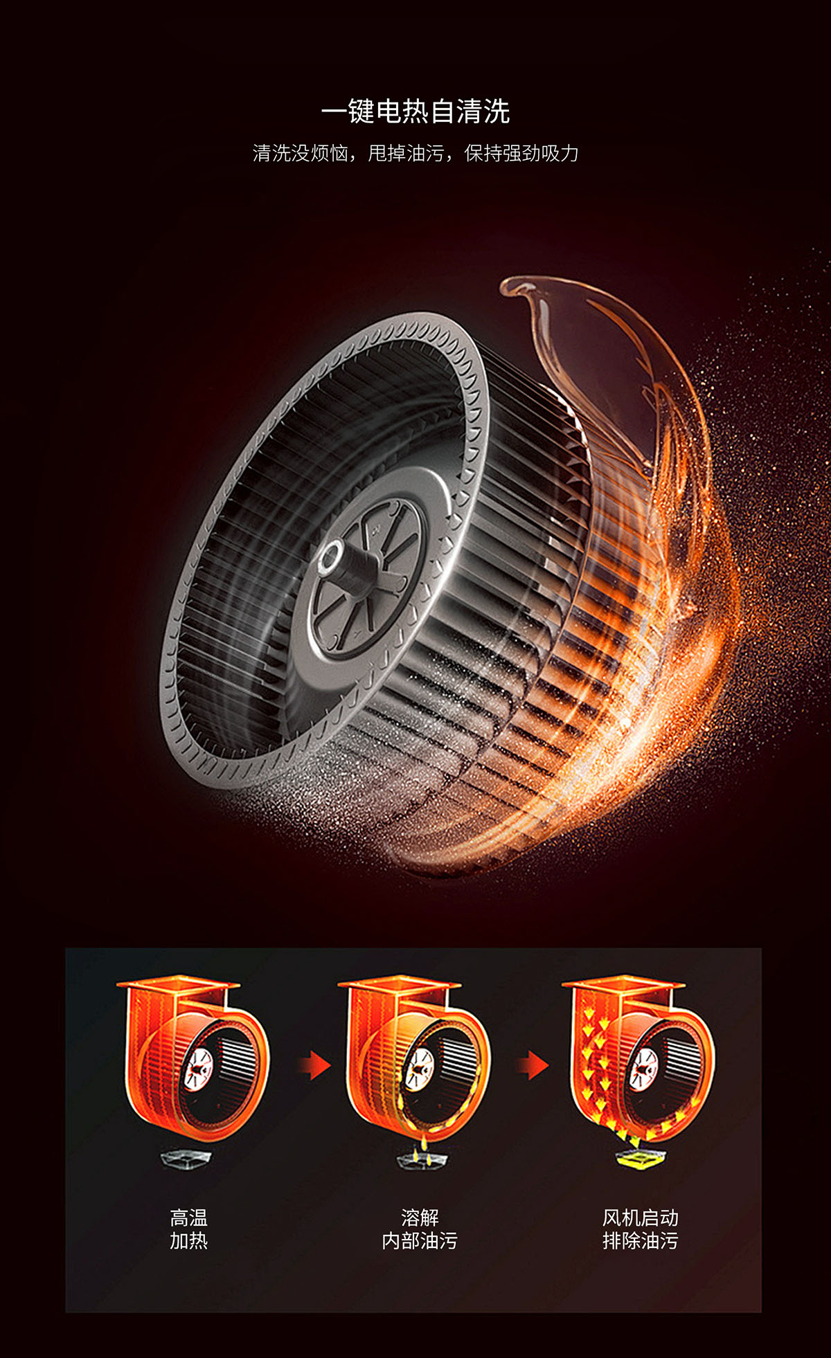 - 電熱自清洗,甩掉油污,保持強(qiáng)勁吸力