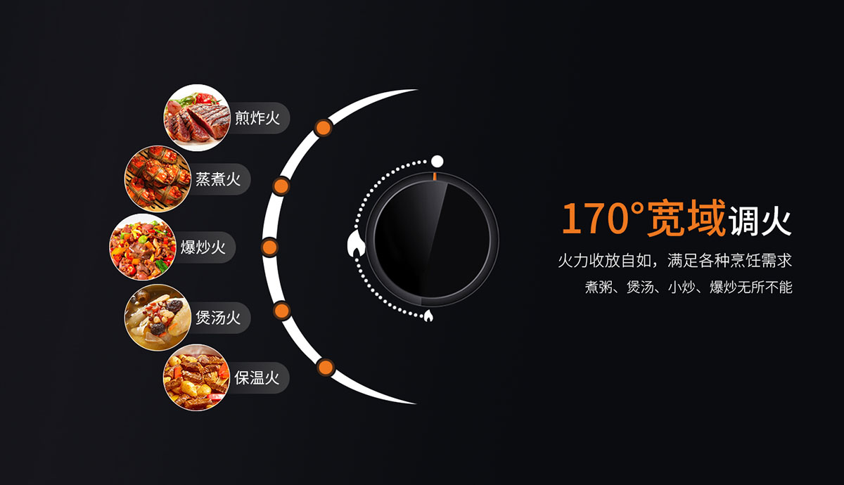 • 170°寬域調(diào)火,火力收放自如