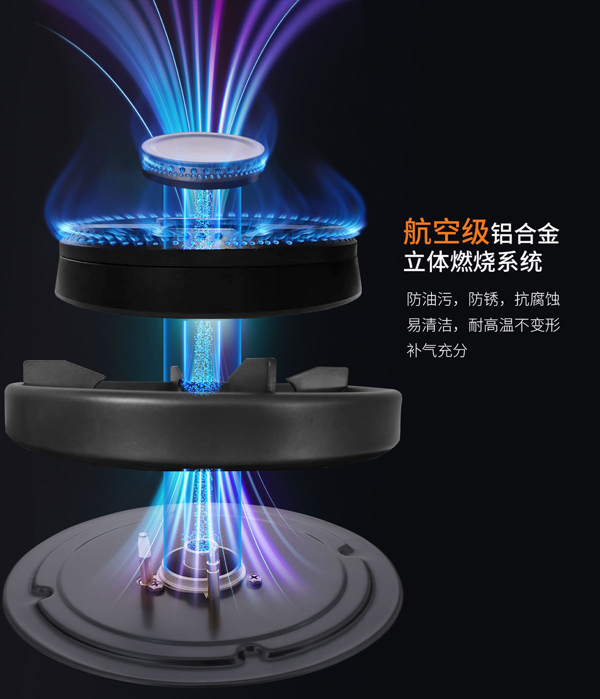 • 航空級(jí)鋁合金一體燃燒系統(tǒng),防腐耐高溫、不變形