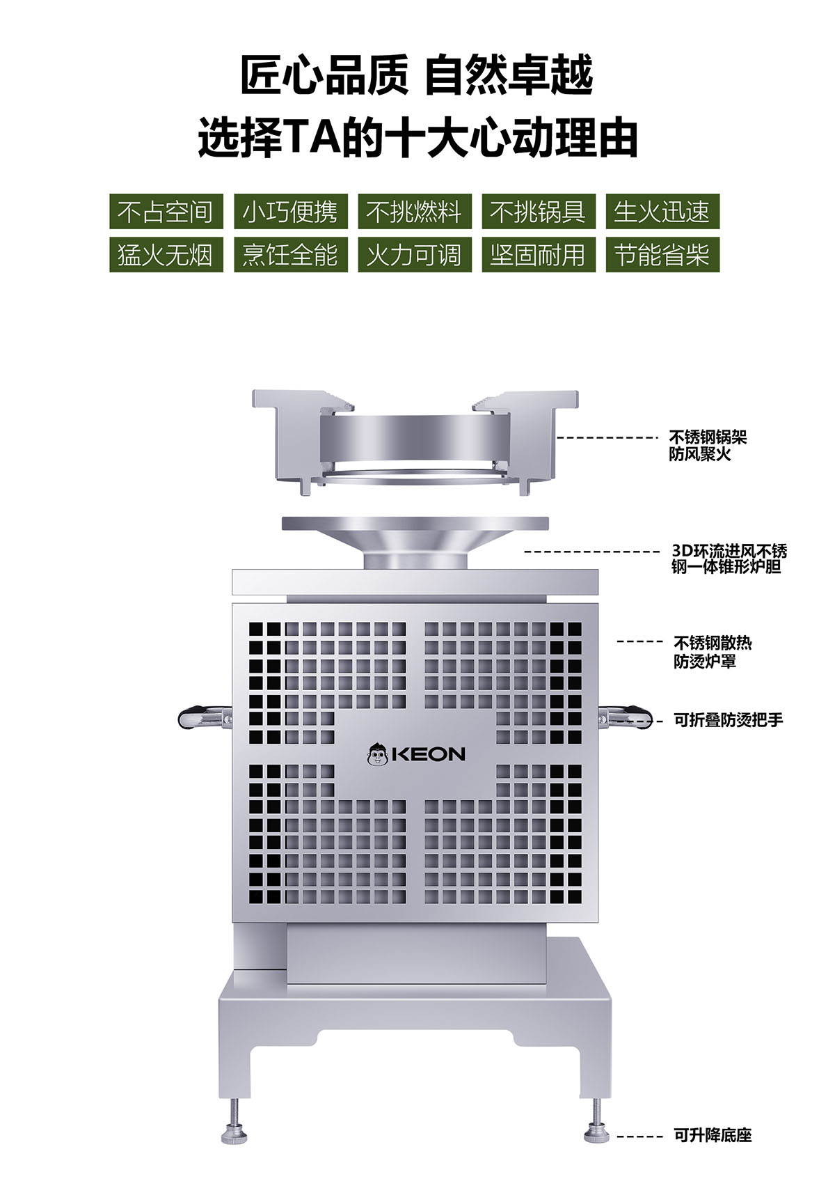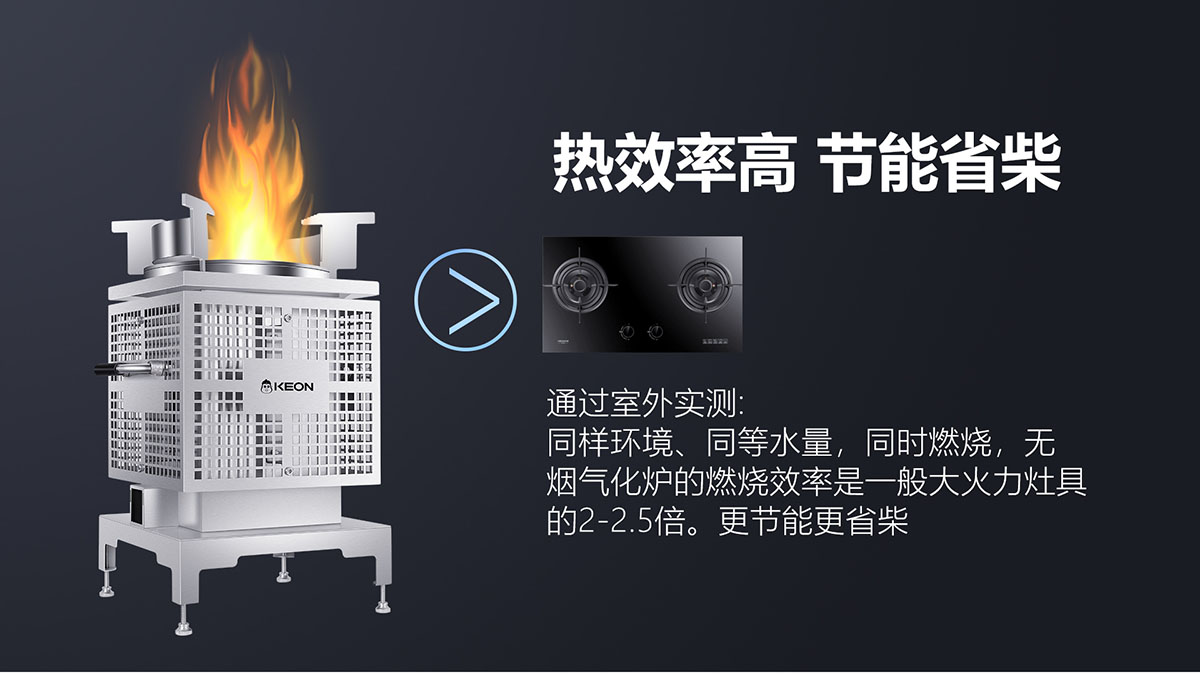• 3D繞流爐膛,科學供氧,猛火無煙