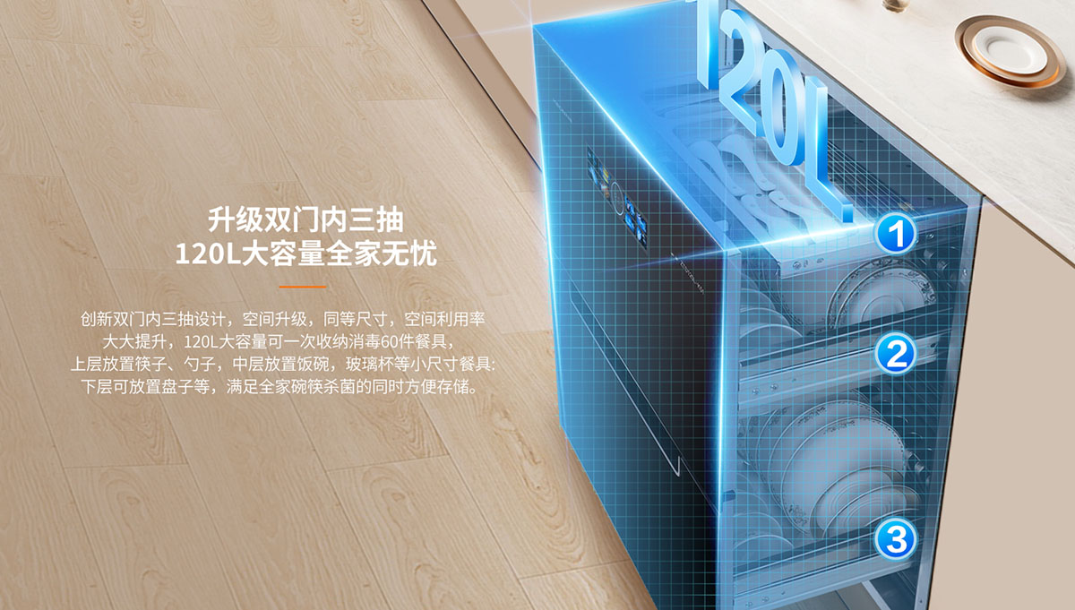 • 內三抽專屬抑菌隔層,避免餐具交叉污染